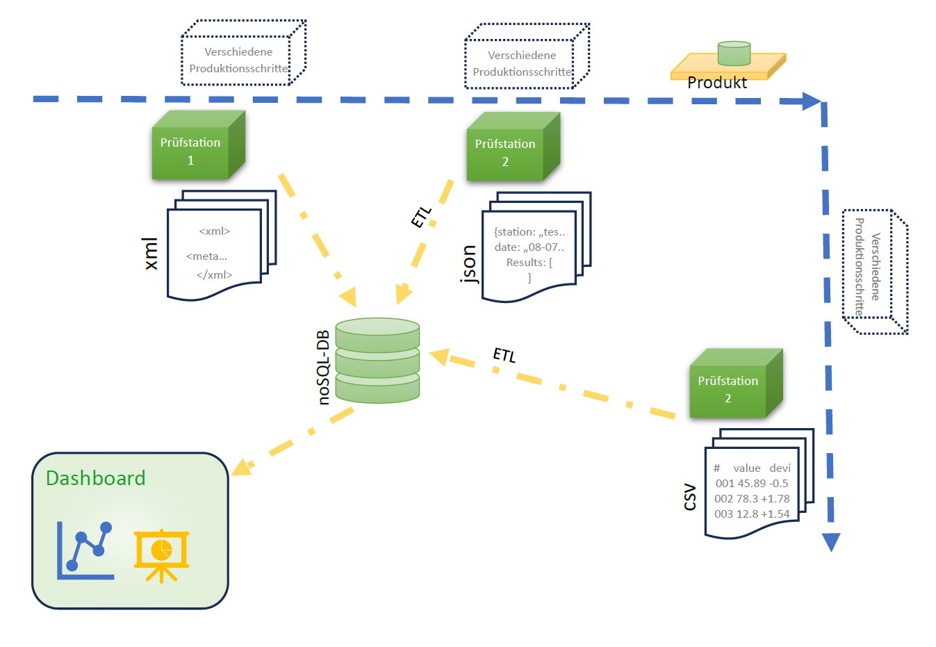 Viele Firmen haben das Problem: Sie haben viele Prüfstationen entlang der Wertschöpfungskette, die auch viele wichtige Daten produzieren.